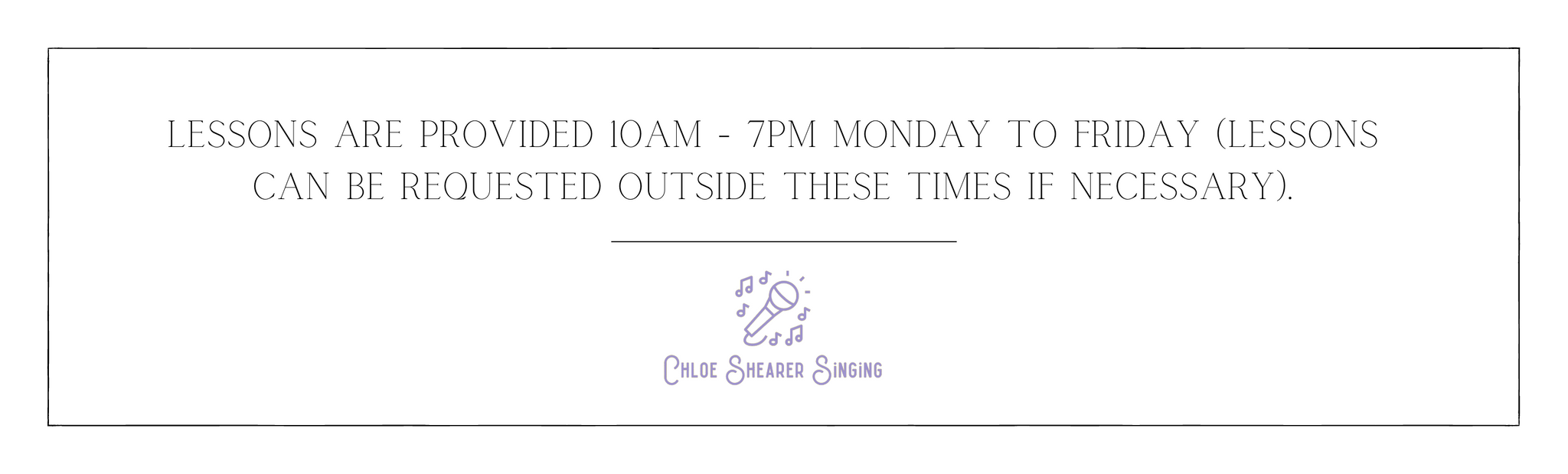 Lessons are provided 10am - 7pm Monday to Friday (lessons can be requested outside of these times if necessary).